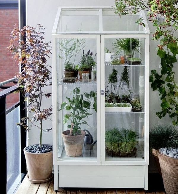 Если у вас есть ненужный шкаф или сервант, который вы планировали выбросить, можно использовать их для изготовления парника. Достаточно немного переоборудовать его, установить стекла или другой прозрачный материал и можно высаживать рассаду.