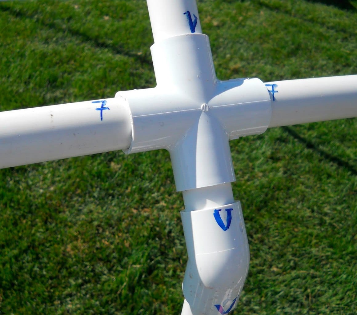 Собирается теплица из ПВХ труб подобно детскому конструктору – путем последовательного набора отдельных элементов в узлы, которые после этого соединяются между собой. Для удобства сборки тройники можно доработать, расточив их таким образом, чтобы трубы проходили в них насквозь. Зафиксировать их можно с помощью обычных оцинкованных саморезов.