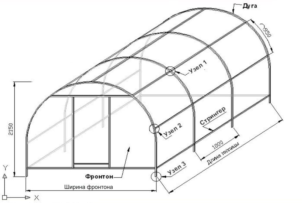 Итак, какие материалы, и в каком количестве понадобятся для создания своими руками теплицы из ПВХ труб по чертежу: