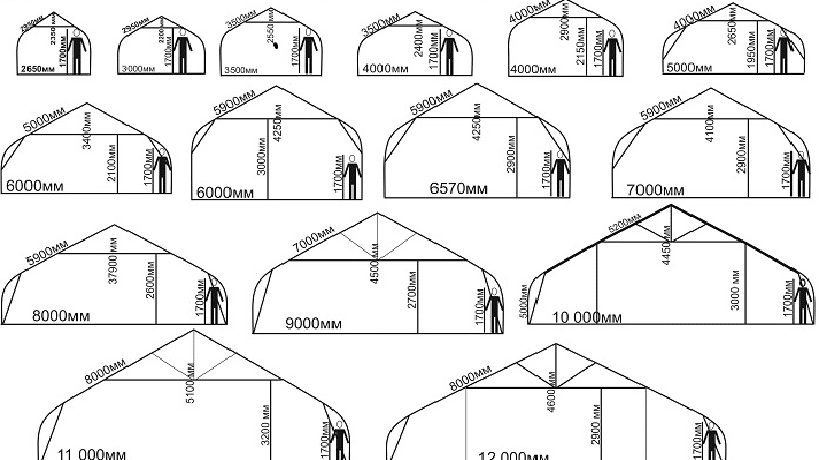 Таким образом, ширина сооружения практически всегда является константой – 3,5 м. Высота его составляет 2 м, и чтобы поднять теплицу выше, дачники советуют соорудить фундамент из бруса, кирпича или пеноблоков.