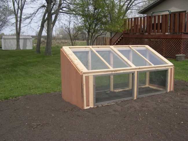 Чаще всего мини-теплицы представляют собой короб из обрезных досок, который покрыт прозрачным материалом или застекленной рамой. Этот вид удобен тем, что его можно ставить в любом месте участка и даже убрать на зиму в подсобное помещение.