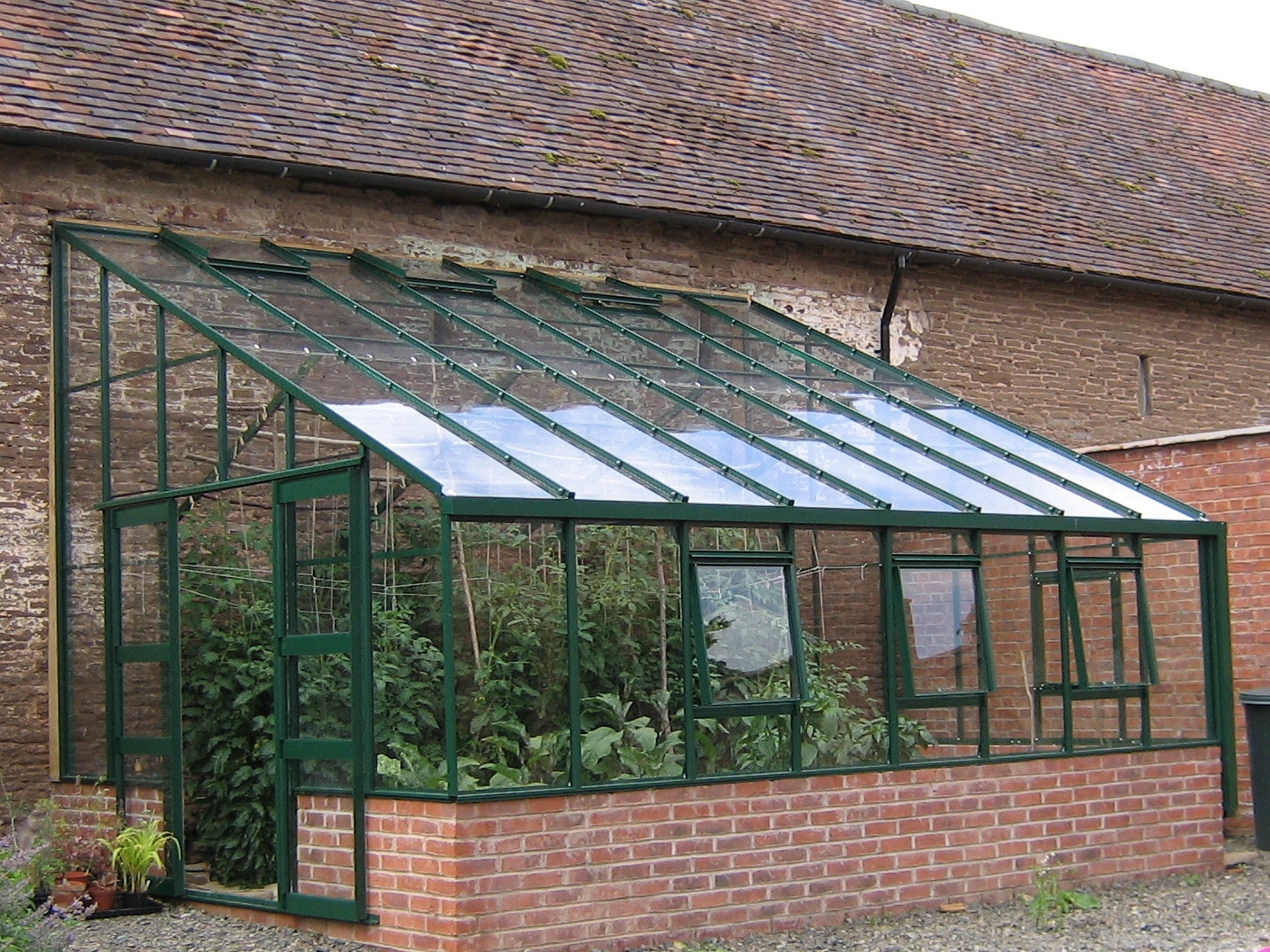 Для домашнего использования целесообразно возводить теплицы, примыкающие к другой постройке. Еще одна популярная и простая конструкция теплицы – односкатная. Такую модель можно построить около дома или любой хозяйственной постройки. Односкатная теплица представляет собой одну наклонную плоскость, примыкающую к опорной стене. Благодаря такой опоре значительно сокращаются расходы на каркас парника.