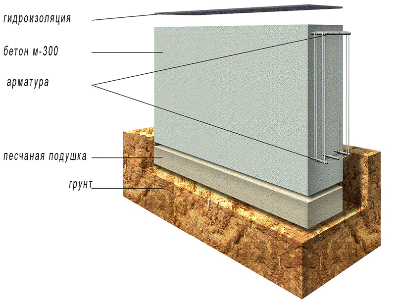 Основанием для монтажа каркаса может быть заглубленная ниже точки промерзания бетонная лента – она долговечна, несложна в обустройстве и малоподвержена подвижкам почвы. Перед строительством необходимо начертить схему фундамента в масштабе и рассчитать количество материалов – цемента (М200 или М300), просеянного речного песка и щебня средней фракции. Также понадобится арматура – металлические прутья сечением 8–10 мм.