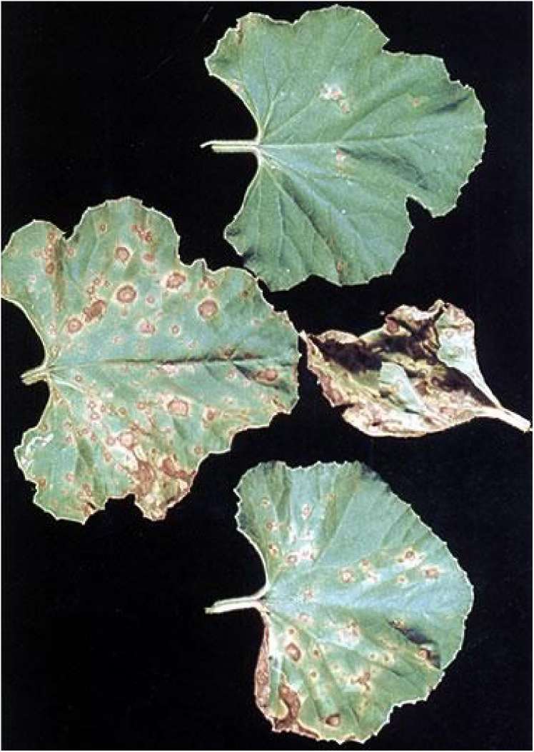 Кладоспориозом повреждаются огурцы открытого грунта в регионах с влажным климатом. Агрессивен он также в парниках и пленочных теплицах. Распространение недуга стимулирует повышенная влажность при пониженной температуре. На листьях появляются угловатые бурые пятна, постепенно приобретающие оливковый цвет. Края пятен ограничивает желтая каемка. На плодах появляются язвы, они теряют вкус, товарный вид. Урожаи снижаются вполовину.
