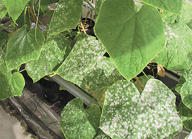 Подошел черед рассказать о мучнистой росе, самой распространенной, по мнению огородников, болезни огурцов. Страдают от этого опасного заболевания и тепличные растения, и саженцы открытого грунта. Однако в теплицах вредоносность проявляется сильнее. Первые признаки болезни можно пропустить: на нижней стороне листьев возникает едва заметный белый налет.