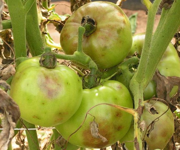 Самая распространенная из всех болезней томатов, которая при определенных погодных условиях за несколько дней способна погубить весь урожай. Больше проявляет себя в сырую, дождливую погоду, начиная с начала или середины августа, когда ночи становятся холоднее, выпадает много росы.