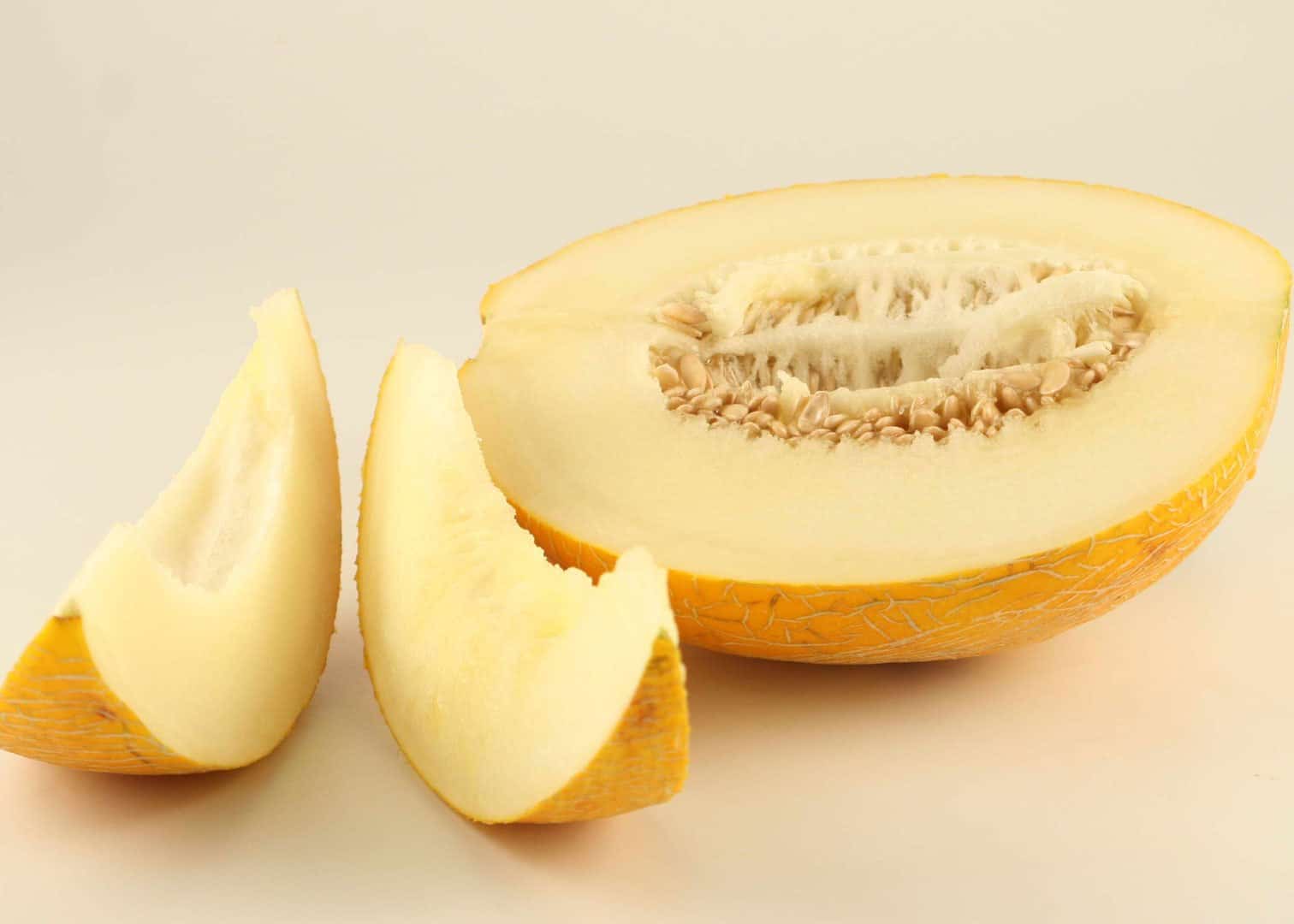 При благополучном развитии плодов и их своевременном вызревании первый урожай можно собирать в середине июля. Понять это очень просто – дозревший плод издает приятный фруктовый аромат. У основания хвостика находятся растрескавшиеся кольца, а если надавить чуть поодаль, то останется след от нажатия. Поверхность спелой дыни при сжимании пружинит. Окраска у плода должна быть насыщенной.
