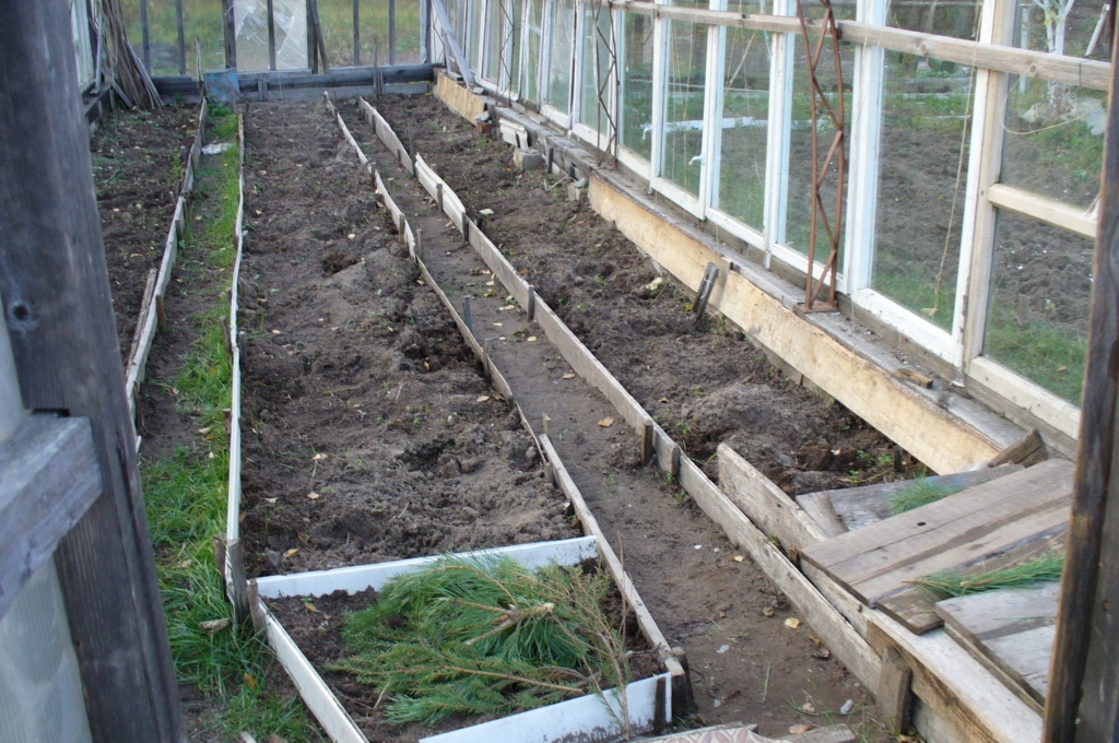 Высота грядок по отношению к дорожке должна составлять как минимум 30 см. Ширина каждой грядки должна соответствовать выбранному сорту томатов и величине тепличного сооружения. Для удобства ухода за саженцами непосредственно возле стены грядки делают однорядными, а все остальные состоят из двух рядов, чтобы ухаживать за ними с обеих сторон.