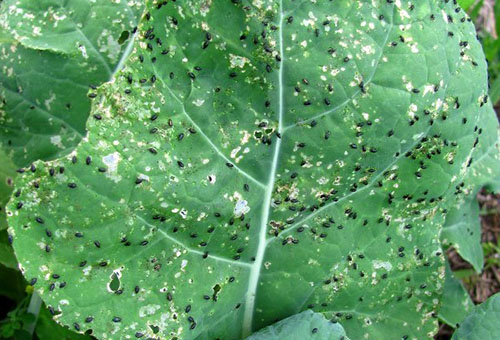 Клопы и блохи высасывают соки из листьев, а личинки капустной мухи подгрызают основание стебля. В теплицу эти вредоносные насекомые попадают через двери и форточки для проветривания. Бороться с ними можно, используя различные средства, продающиеся в специализированных магазинах.