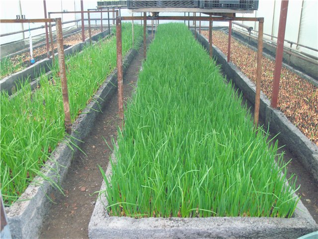 - Одним из лучших для тепличного выращивания считают многоярусный лук (Грибовский-38, зимний Одесский).