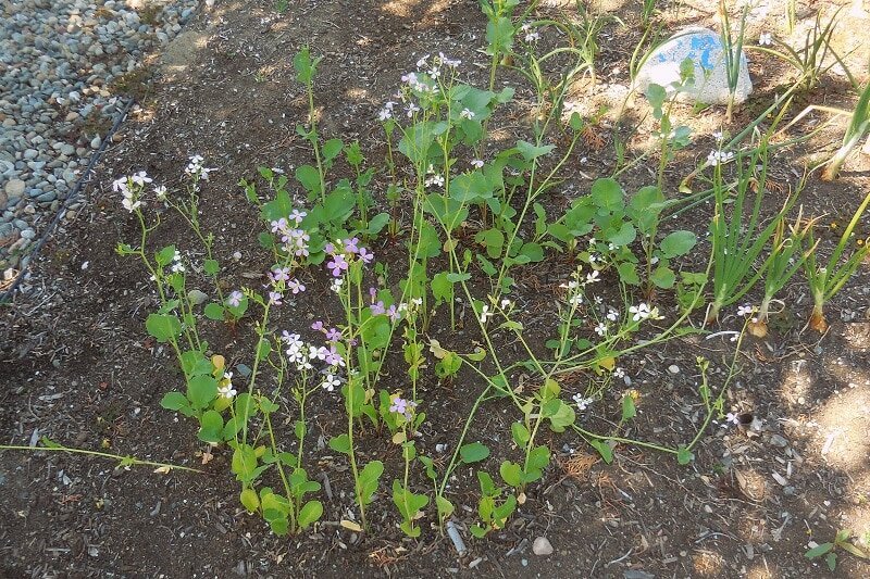 Энтузиастам, предпочитающим выращивать редис в парнике из собственных семян, гибриды не подходят. Чтобы редиска дала цветение, ее не выкапывают, а оставляют, со временем растение дает стрелки, на которых появляются цветки, а затем созревают семена. С трех растений можно собрать до 100 г посадочного материала.