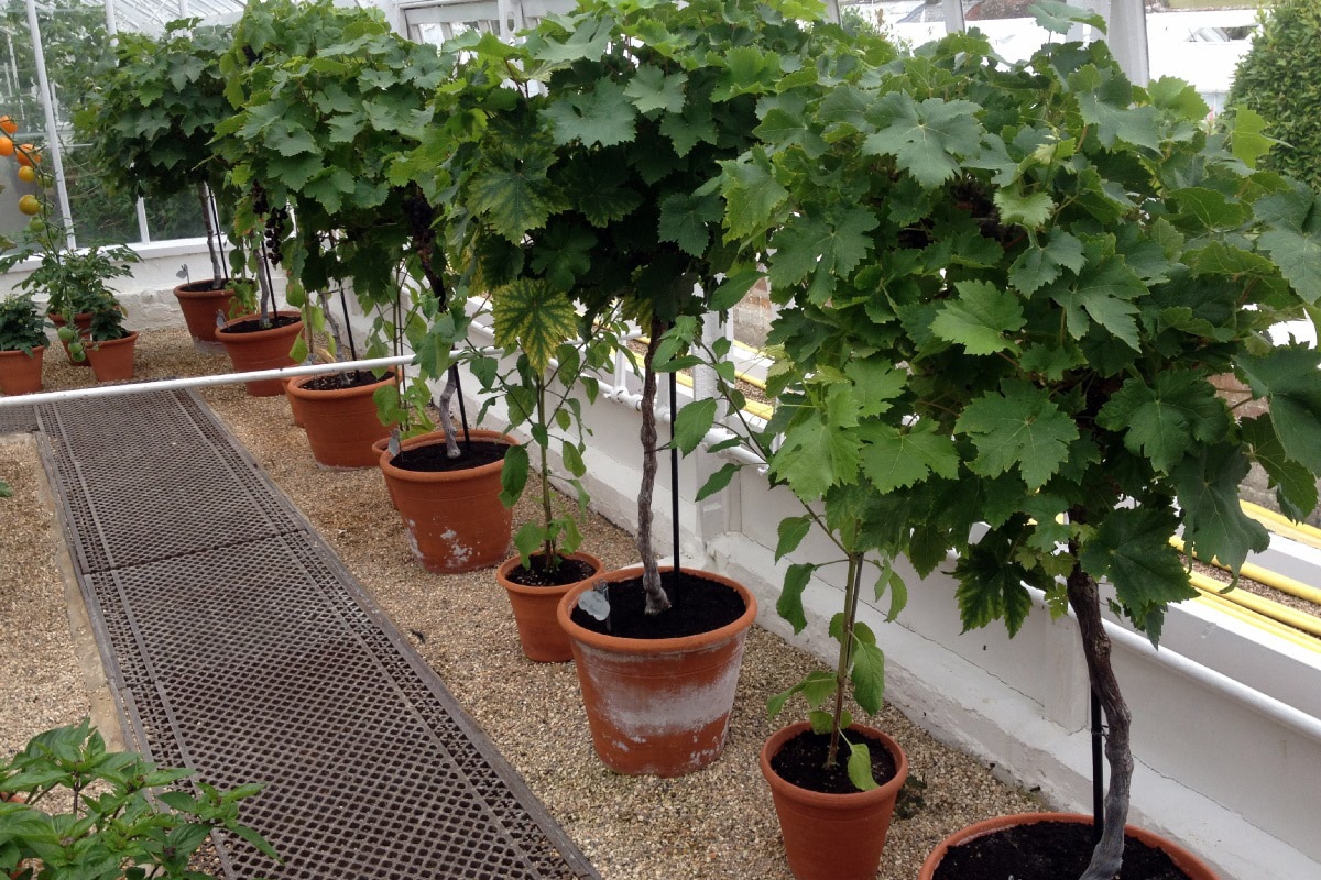 Выращенную горшечную лозу высаживают в парники в любое время вне зависимости от времени года, хотя предпочтительнее осуществить это в ноябре либо феврале, сразу проводя первоначальную обрезку. Растения размещают возле боковых стен рядами.