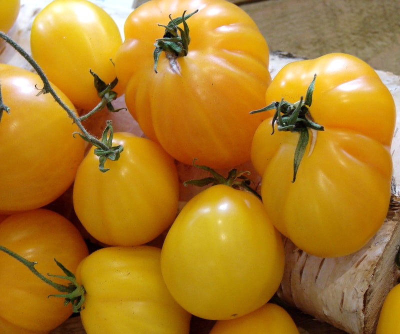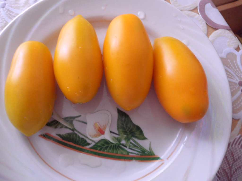Томаты имеют ярко-желтую окраску, мясистые, вкусные. Особо оригинально выглядит их форма, плоды аппетитно смотрятся в консервированном виде. В компанию к желтоплодным растениям можно высадить разновидность этого сорта с черной окраской плодов.