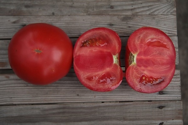 «Воловьи уши» – прекрасный сорт алтайской селекции, дающий высокие урожаи. Растения индетерминантные. Томаты имеют мало семян, средний вес 140 г, мякоть плотная и мясистая. Очень интересна форма плодов, также сорт ценится за отменный вкус. Несмотря на свою сливовидную форму, помидоры внутри довольно сочные.