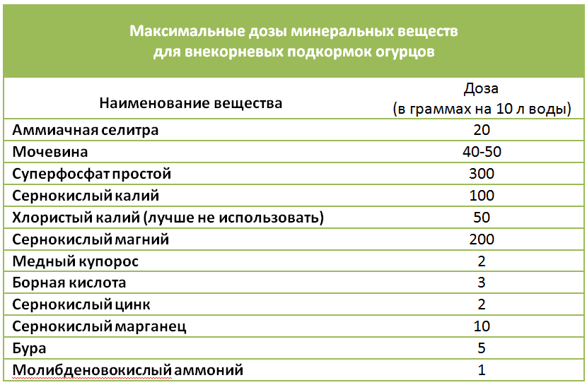 Если вы «сами с усами» и не желаете пользоваться готовыми комплексными удобрениями, то, составляя растворы, не превышайте доз минеральных веществ, указанных в таблице.