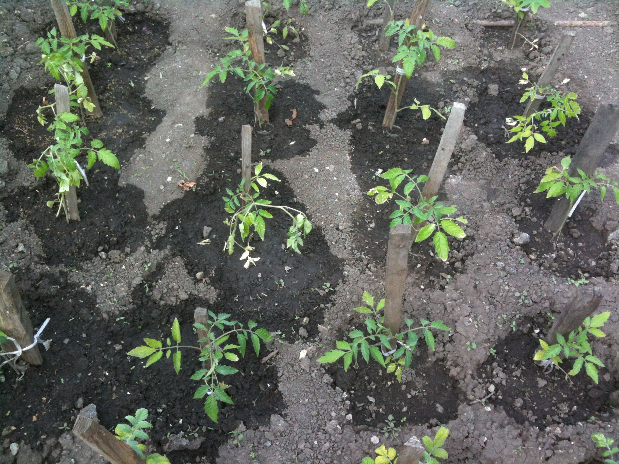 - Высадка растений. Перед посадкой раскислить грунт (при помощи доломитовой муки с бором). В выемки можно добавить органическое удобрение для томатов (компост), отделив его от корня прослойкой грунта.